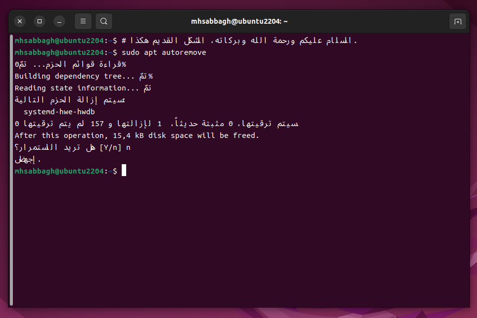 بالطبع يمكنك تغيير البرنامج وتخصيصه حسب حاجتك، ولكن هذا مجرّد مثال ليريك طريقة عمل البرامج العربية من سطر أوامر لينكس.