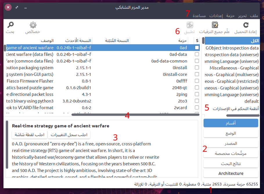 - ستُعرض هنا قائمة الحزم المتوفرة على حسب التصنيف أو الإعدادات التي اخترتها.