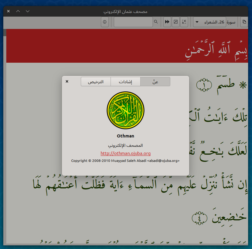 برنامج متوفر في معظم توزيعات لينكس افتراضيًا، وهو قارئ إلكتروني لسور القرآن الكريم. يدعم البحث عن الآيات والتنقل بين السور، لكنه لا يدعم أكثر من ذلك. يمكنك تثبيته على جميع التوزيعات الدبيانية عبر الأمر: