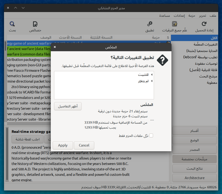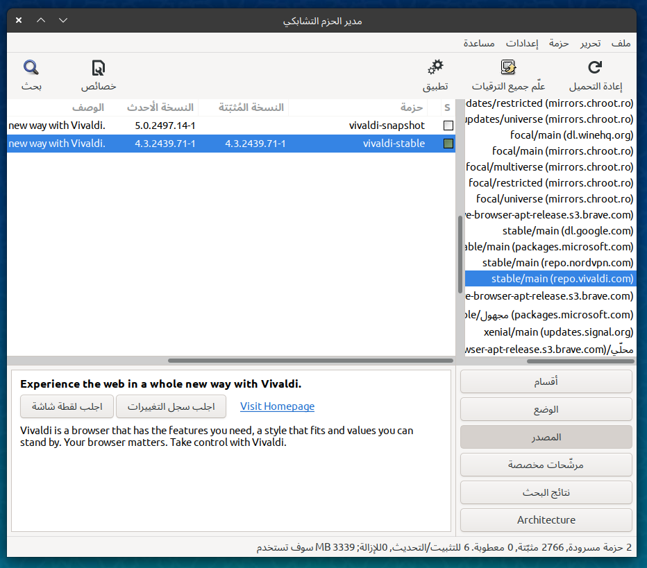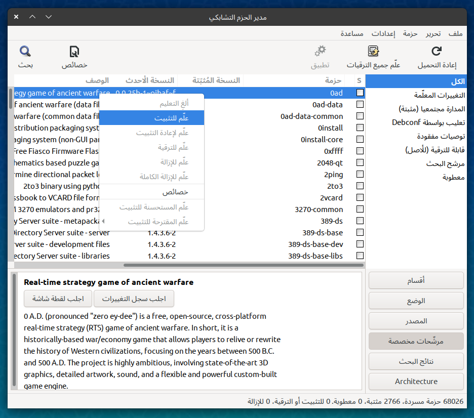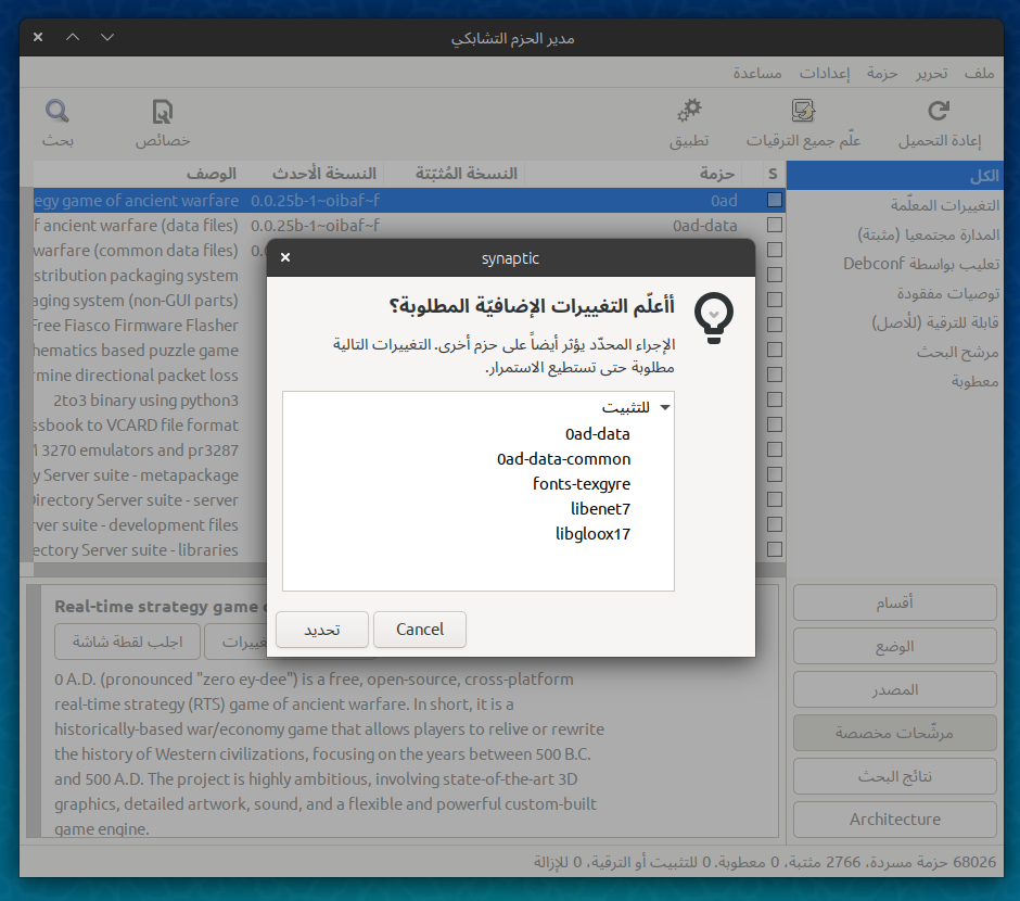 إدارة الحزم مع برنامج Synaptic